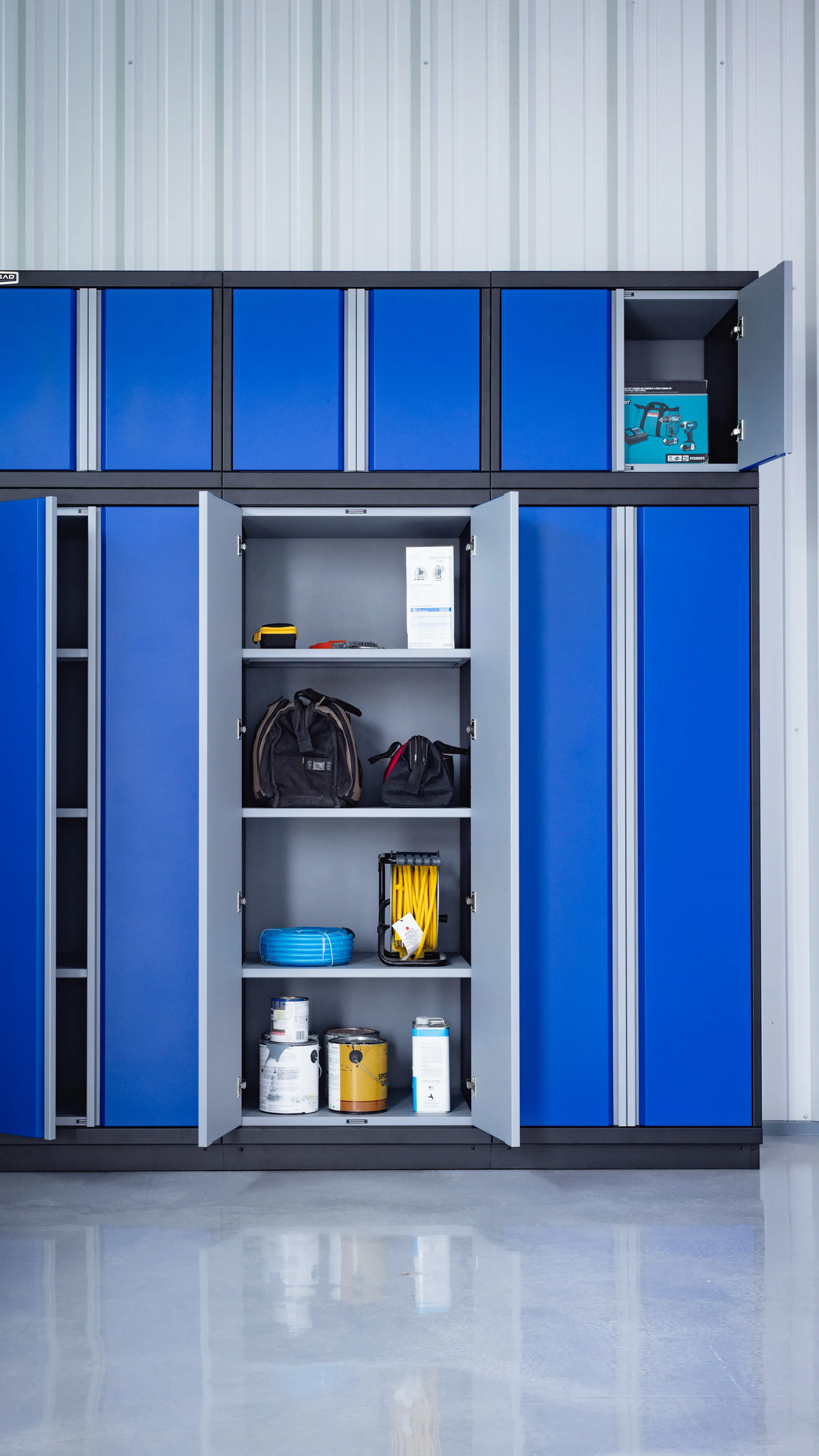 Steve is a motorcycle enthusiast, and we had the opportunity to help him solve a unique challenge. Our cabinets allowed him to organize his gear and tools efficiently, keeping his collection accessible and his workspace clutter-free, so he’s always ready for the next ride!!!